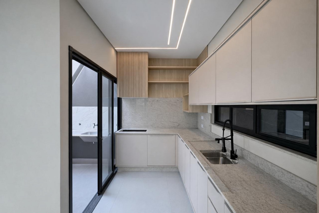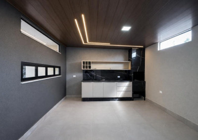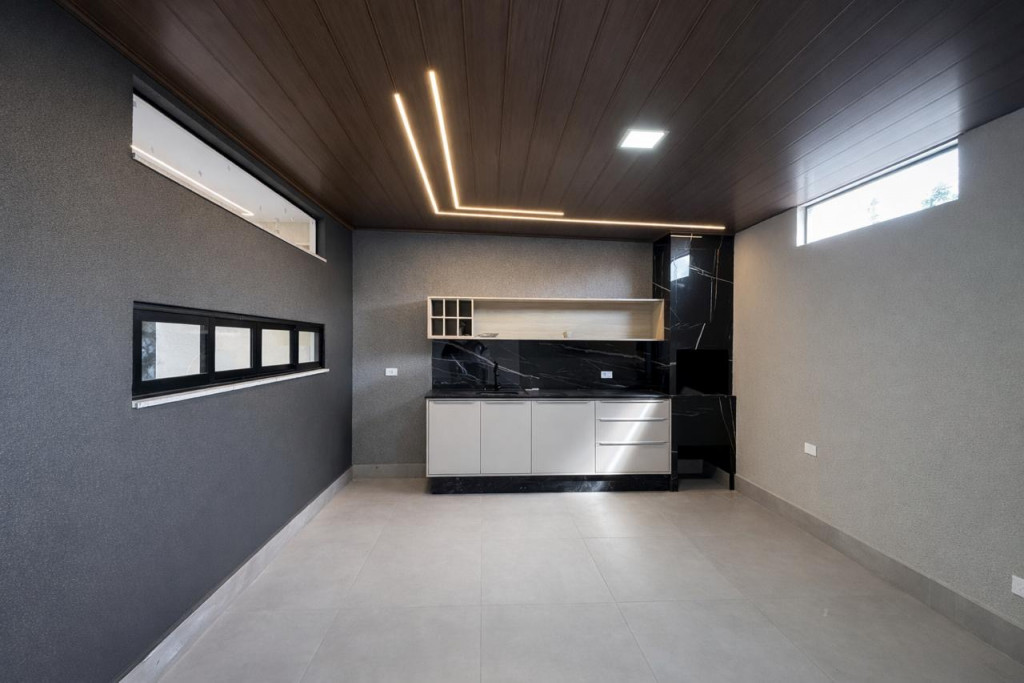 02 dormitorios sendo 01 suite, sala ampla com pé direito alto , cozinha com moveis planejados, area gourmet completa com churrasqueira , banheiro , lavanderia e 02 vagas de garagem cobertas